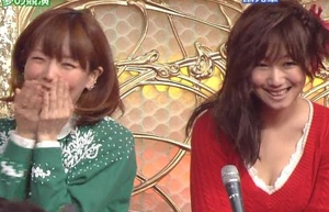 | Depuis qu'elle s'est rendue compte qu'elle était sur Jpop Trash et que l'on se moquait de sa bouche-ventouse, Waka Inoue essaye de nous descendre à la moindre occasion. PAN! Encore manqué, ahaha! Bouche-ventouse, Bouche-ventouse, Bouche-ventouseuuuhh! PAN! Ah! Dans l'épaule! Salope! Tirons-nous! | On se demande lequel des deux a le plus de poitrine... | Ah, Sachiko a mis ses larges lunettes noires, gageons que Toshiro est encore rentré éméché hier soir alors... |